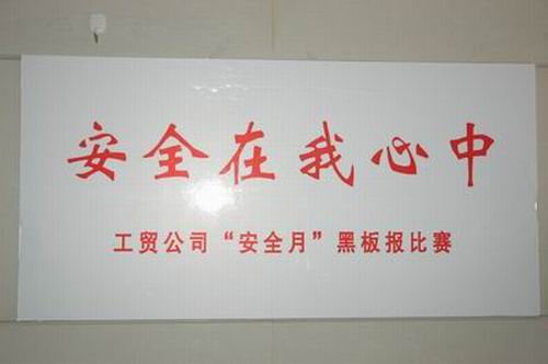 南通工貿(mào)公司在安全月活動中,組織各集約化管理片區(qū)企業(yè)舉辦黑板報比賽。比賽以“綜合治理、保障平安”為宗旨,體現(xiàn)了“安全在我心中”和“以人為本、關(guān)愛生命”的崇高主題,具有內(nèi)容健康、創(chuàng)意新穎的特點,頗受參觀者好評。