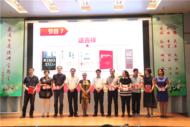 本次活動圍繞“誦經(jīng)典”“學模范”“展風采”“話廉潔”“觀情景劇”“談感悟”“送吉祥”“唱歌曲”八個環(huán)節(jié)開展。詩朗誦《實干才能夢想成真》重溫了習總書記提出的“中國夢”,堅定了大家在平凡崗位上創(chuàng)造不平凡的信心;江天化學吳松華、精華集團朱玉娟兩位同志的先進事跡讓大家在身邊人、身邊事中找到感動;情景劇《春風里的故事》讓大家在忍俊不禁中體味到資產(chǎn)管理一線員工的不易和他們迎難而上的信心;一曲《真心英雄》展現(xiàn)出了集團職工團結(jié)向上的蓬勃朝氣,也將活動推向高潮。在“送吉祥”環(huán)節(jié),集團領(lǐng)導將精心挑選的《投資最重要的事》等金融書籍贈予各投資企業(yè)代表,勉勵他們加強學習,不斷創(chuàng)新,用拼搏和奉獻實現(xiàn)集團的跨越發(fā)展。