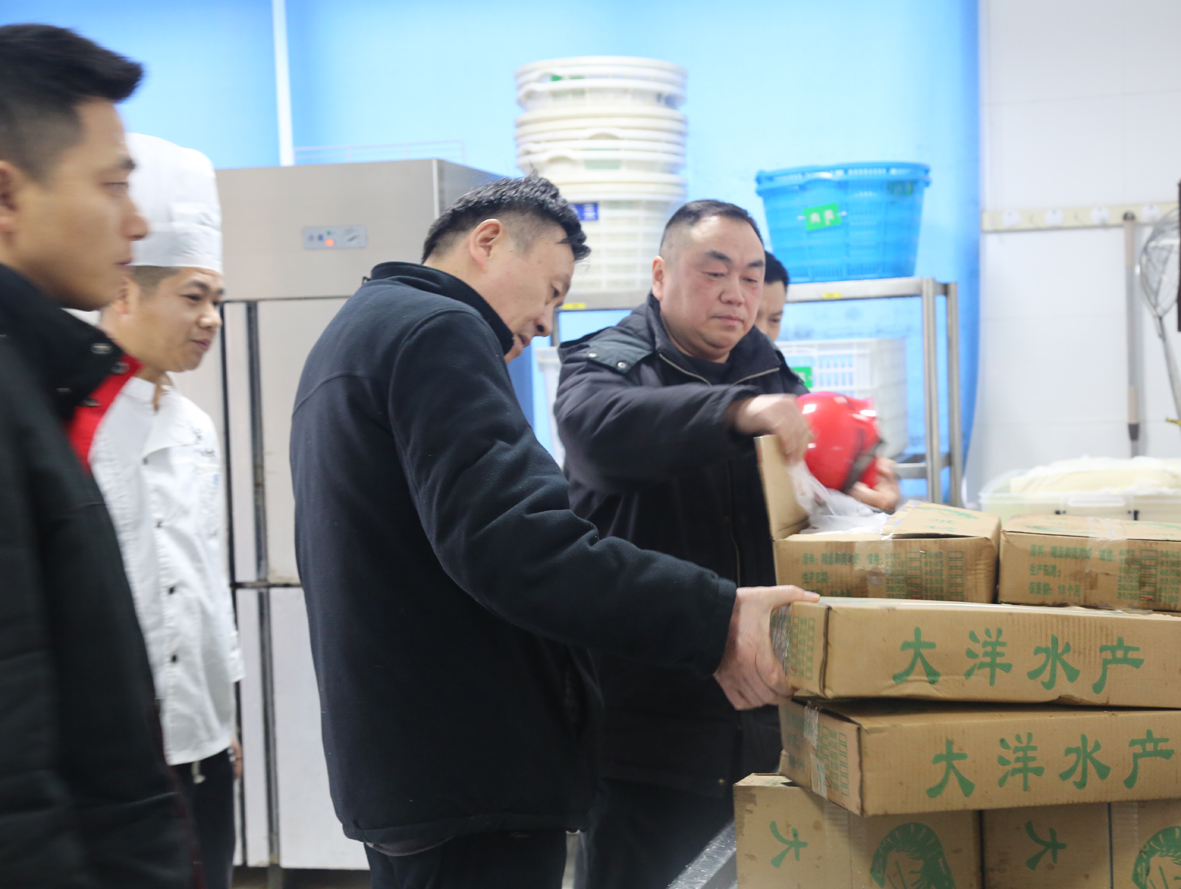 薛總首先檢查了食堂春節(jié)期間食品準(zhǔn)備和食堂安全工作。要求后勤進(jìn)一步完善節(jié)日期間菜品,讓員工節(jié)日期間在公司加班過得舒心,過個(gè)穩(wěn)定、和諧的新年。