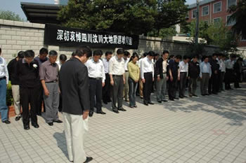 5月19日下午2:28,公司全體員工在辦公樓前集中,面向國旗和四川方向,向四川汶川大地震遇難者默哀三分鐘。在司辦公的外單位人員同時(shí)哀悼。黨委副書記、副董事長徐憲華主持哀悼儀式。
