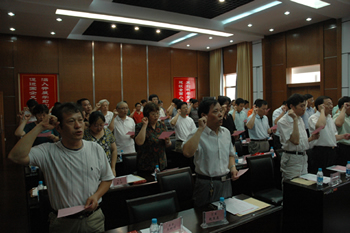 6月29日,在建黨八十八周年前夕,集團黨委隆重舉行迎“七一”暨先進表彰大會。集團黨委及領導班子成員、所屬企事單位黨組織負責人、離休干部代表、本部黨員共70余人參加會議。會議由黨委副書記、副董事長徐憲華主持。 集團黨委書記、董事長陳照東作重要講話,回顧了中國共產黨建黨八十八年來走過的光輝歷程,總結了過去一年集團黨建工作在思想建設、組織建設、廉政建設、老干部工作等方面所取得的成績;通報了今年上半年經濟工作基本情況:1-6月份主要指標同比回落,但二季度環(huán)比回升,初步呈現復蘇向好趨勢;企業(yè)搬遷、資產盤活、上市融資、資源整合等一批項目推進工作扎實有效,空殼企業(yè)、直管資產、安全生產等管理工作進一步加強。集團黨委堅持推進黨的建設和經濟建設同步發(fā)展,為有效應對金融危機、保持經濟平穩(wěn)、健康發(fā)展起到堅強的領導核心作用。 針對下半年黨建及經濟工作,陳照東書記會上要求各級黨組織以保增長為中心目標、以服務項目發(fā)展為第一要務,通過深入開展學習實踐科學發(fā)展觀活動,不斷提高黨組織凝聚力和戰(zhàn)斗力,為完成年度目標任務提供強有力的思想和組織保障。他指出下半年經濟工作要突出五個“抓”:集中精力抓盤活、一著不讓抓搬遷、堅定不移抓上市、積極有效抓整合,練好內功抓管理;以黨建工作的高效運轉,推動經濟實現又好又快發(fā)展,奪取“扎實保增長”的全面勝利。 會議表彰了江山股份黨委等4家“五好”黨組織、王明華等47名優(yōu)秀黨員、王建華等23名優(yōu)秀黨務工作者,并向光榮入黨60年的離休干部代表贈送了紀念品。江山股份黨委副書記陶坤山等受表彰的先進集體和個人代表作了大會發(fā)言。 會上還舉行了新老黨員在黨旗下宣誓和重溫入黨誓詞儀式。