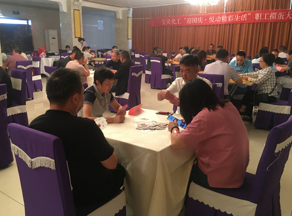 一年一度的國慶、中秋佳節(jié)將至,為慶祝新中國成立71周年,進(jìn)一步提升寶靈群眾性文化活動的廣泛參與性,豐富和活躍職工的業(yè)余文化生活, 經(jīng)公司黨委研究,決定繼續(xù)舉辦寶靈化工“迎國慶·悅動精彩生活”職工摜蛋大賽。各車間、部門高度重視,積極發(fā)動并踴躍報(bào)名,共有44名選手參賽。