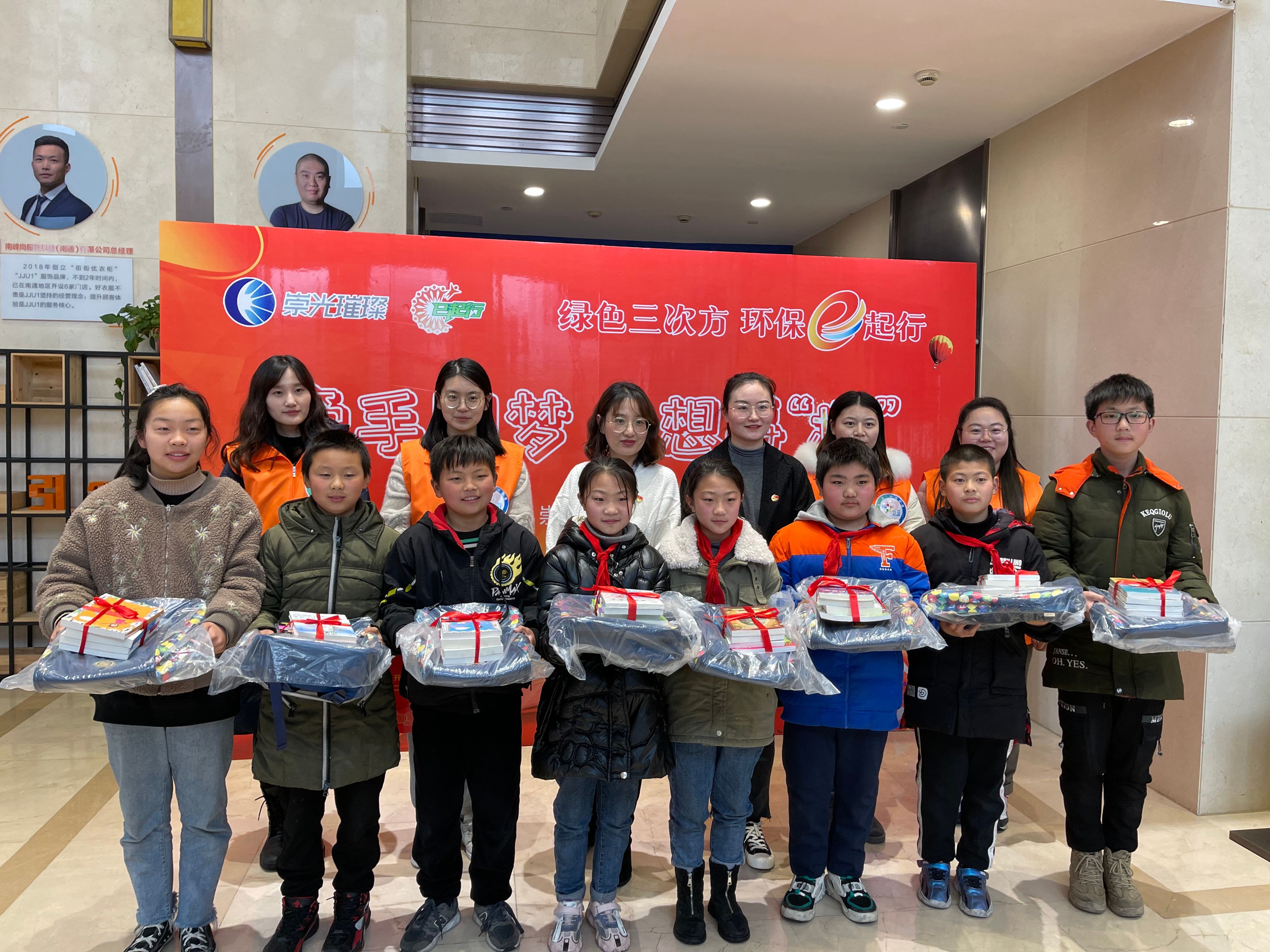 活動第二項(xiàng)內(nèi)容為南通師范第二附屬小學(xué)的學(xué)生與紅旗小學(xué)、文華小學(xué)的新市民子女溫暖牽手。經(jīng)過前期的“微心愿”征集,不少新市民學(xué)生提出了文具、書籍、書包等“微心愿”,通師二附的學(xué)生認(rèn)領(lǐng)其中部分微心愿,其余心愿則由園區(qū)企業(yè)認(rèn)領(lǐng)?;顒赢?dāng)天,國城園區(qū)樓宇企業(yè)中由國城公司與濠濱黨員代表向新市民學(xué)生贈送了心愿禮物。 雨勢變小后,大家共同種下“友誼”之樹,希望孩子與小樹苗一起茁壯成長。