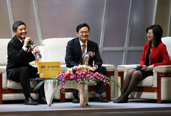 3月30日晚,由市政府主辦的2010南通經(jīng)濟(jì)年度人物暨民營經(jīng)濟(jì)爭創(chuàng)“三名”年度人物頒獎(jiǎng)典禮在更俗劇院隆重舉行。在這場堪稱南通經(jīng)濟(jì)領(lǐng)域的“奧斯卡”頒獎(jiǎng)典禮上,18位來自全市經(jīng)濟(jì)發(fā)展不同領(lǐng)域的領(lǐng)軍企業(yè)家榮耀登臺(tái)領(lǐng)獎(jiǎng)。集團(tuán)董事長陳照東作為市屬國有企業(yè)代表光榮當(dāng)選“2010南通經(jīng)濟(jì)年度人物”。 市委副書記、市長丁大衛(wèi)為獲獎(jiǎng)企業(yè)家頒獎(jiǎng),并代表市政府向南通企業(yè)界領(lǐng)軍人物表示崇高敬意。他說,南通的優(yōu)秀企業(yè)和企業(yè)家隊(duì)伍是南通經(jīng)濟(jì)社會(huì)發(fā)展進(jìn)程中極為寶貴的財(cái)富,打仗要靠野戰(zhàn)部隊(duì)和戰(zhàn)斗英雄,而和平時(shí)期的社會(huì)發(fā)展要靠優(yōu)秀企業(yè)家隊(duì)伍沖鋒在前,今天評選出的企業(yè)家是南通優(yōu)秀企業(yè)家的典型代表,感謝他們?yōu)?nbsp;南通經(jīng)濟(jì)社會(huì)建設(shè)作出的突出貢獻(xiàn)。 頒獎(jiǎng)晚會(huì)歷時(shí)兩個(gè)小時(shí),內(nèi)容豐富多彩,人物短片、現(xiàn)場訪談、文藝表演等相互穿插,展現(xiàn)了我市經(jīng)濟(jì)發(fā)展的喜人成績和企業(yè)家們奮發(fā)拼搏的精神風(fēng)貌。中央電視臺(tái)著名主持人張泉靈受邀來到現(xiàn)場,以機(jī)智、幽默的主持風(fēng)格與企業(yè)家進(jìn)行現(xiàn)場訪談,在思想的碰撞與交流中,將現(xiàn)場氣氛推向高潮。 在與張泉靈的即席互動(dòng)對話中,陳董事長以樸實(shí)精典的語言、幽默機(jī)智的應(yīng)對贏得陣陣掌聲。分享治理企業(yè)的成功經(jīng)驗(yàn),他提出,“國有企業(yè)首先要加強(qiáng)現(xiàn)代企業(yè)制度建設(shè),規(guī)范運(yùn)作、公開透明;二是善于通過資本運(yùn)作的手段吸收外部資源,轉(zhuǎn)換內(nèi)部機(jī)制;三是管理要體現(xiàn)人性化,制度設(shè)計(jì)應(yīng)合理,要培養(yǎng)員工良好的行為習(xí)慣, 充分尊重和激勵(lì)員工,這是國企科學(xué)管理與發(fā)展三大法寶?!?/span> 市四套班子領(lǐng)導(dǎo)出席頒獎(jiǎng)典禮。集團(tuán)全體員工組成方陣參加了這場讓人難忘的晚會(huì),“產(chǎn)控集團(tuán)、振興國企”的口號(hào)響徹全場,代表了“十二五”加快實(shí)現(xiàn)市屬國企跨越發(fā)展的心聲。
