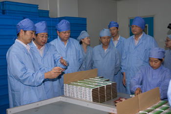 9月12日上午,南通市政府朱晉副市長(zhǎng)、陸善平副秘書長(zhǎng)一行來(lái)到精華制藥集團(tuán)股份有限公司調(diào)研醫(yī)藥產(chǎn)業(yè)發(fā)展工作。在王氏保赤丸生產(chǎn)車間,朱市長(zhǎng)詳細(xì)詢問(wèn)了產(chǎn)品銷售、市 場(chǎng)前景、質(zhì)量控制等方面的情況,他強(qiáng)調(diào),精華制藥集團(tuán)擁有王氏保赤丸、季德勝蛇藥片等一批療效確切的知名產(chǎn)品,企業(yè)要在發(fā)揮品牌影響、加強(qiáng)質(zhì)量管控、擴(kuò)大企業(yè)規(guī)模、促進(jìn)轉(zhuǎn)型升級(jí)上下功夫。朱市長(zhǎng)要求食品藥品監(jiān)管部門要進(jìn)一步加強(qiáng)服務(wù)力度,在加強(qiáng)藥品質(zhì)量監(jiān)管、保障藥品質(zhì)量安全的同時(shí),發(fā)揮職能優(yōu)勢(shì)幫助企業(yè)解決發(fā)展中的突出問(wèn)題。 南通市食品藥品監(jiān)管局戴輝局長(zhǎng)、市政府辦公室孫寶軍副主任陪同調(diào)研,精華制藥朱董事長(zhǎng)匯報(bào)了企業(yè)的基本情況和促進(jìn)醫(yī)藥產(chǎn)業(yè)發(fā)展的思路和舉措。